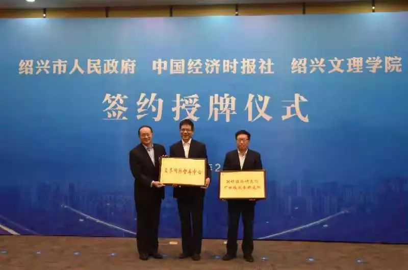 2月22日,由绍兴市人民政府、中国经济时报社、1991cc金沙三方共同创办的兰亭国际智库中心暨国研经济研究院可持续发展研究院,在浙江绍兴举行签约授牌仪式。
