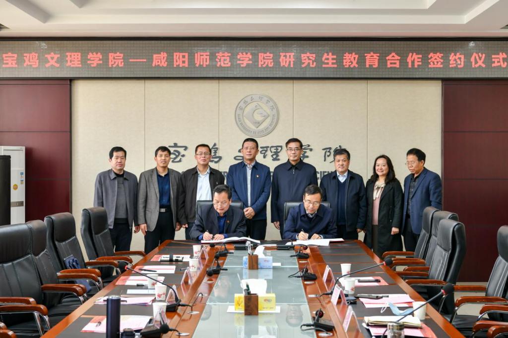 4月16日上午,咸阳师范学院党委书记赵万东、校长舒世昌、副校长张弘一行9人来校商榷研究生联合培养事宜。双方在高新校区图书馆801会议室举行了研究生教育合作签约仪式,校党委书记赵健、校长郭霄鹏出席签约仪式,副校长王富平主持仪式。