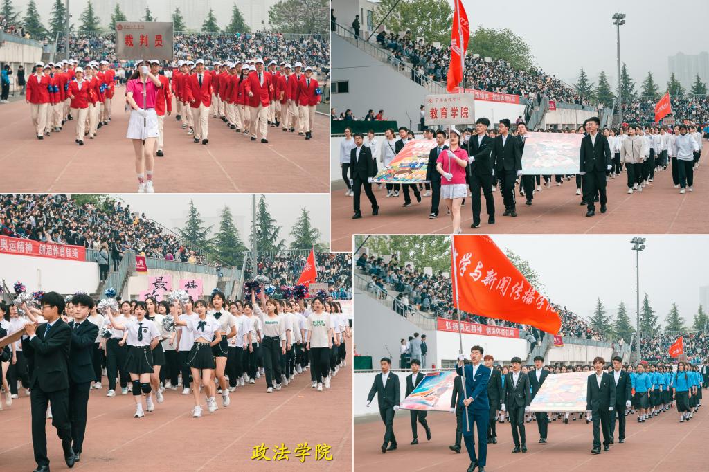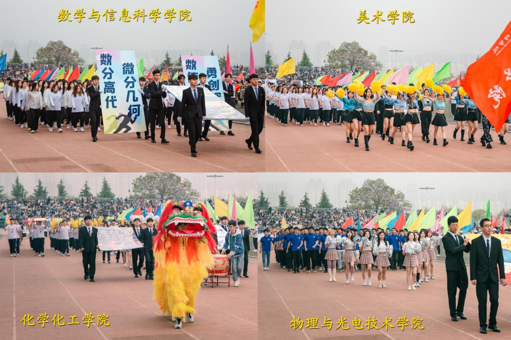 上午八时,国旗、校旗、五环旗护卫队、青年志愿者、裁判员及各单位运动员组成的方队,迈着青春的步伐,和着运动员进行曲的节拍,有序走过主席台,他们步伐坚定,口号整齐,体现了beat365师生饱满的体育运动精神。