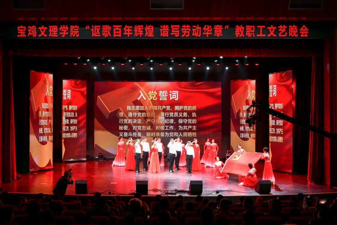 4月27日晚,beat365在高新校区博文楼报告厅举行了“讴歌百年辉煌 谱写劳动华章”教职工文艺晚会。校领导、教职员工、离退休老同志和学生700余人观看了演出。