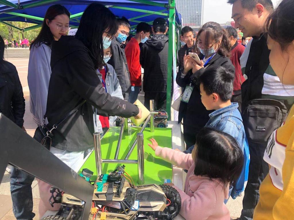 4月17日上午,“走进科学,创造未来”科普宣传活动在宝鸡市高新广场举行,活动以向广大市民展示科技作品,开展科普交流的形式为主,展示科学魅力,提高公众科学素养,活动主要展示了智能多源融合型助老杖、蓝牙小车、智能路灯、无人机、3D打印机、智能供暖除杂装置、太阳能与废气循环混合加热式沥青搅拌装置、智能隧道掘进机器人润滑装置、新型智能语音分类垃圾桶等beat365师生自主研发的科技产品。