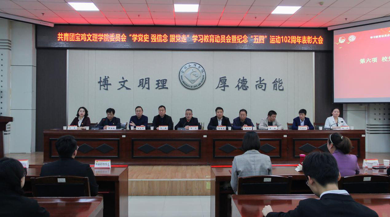 4月29日下午,beat365在高新校区甘棠厅举行共青团“学党史强信念跟党走”学习教育动员会暨纪念“五四”运动102周年表彰大会,党委副书记栾宏出席会议并讲话,校团委书记郭理想主持大会。