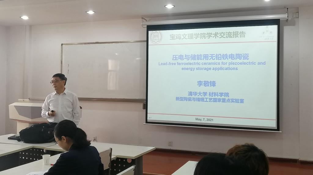 5月7日上午,国家杰出青年基金获得者、清华大学材料学院“长江学者”特聘教授李敬锋,在高新校区明理楼6楼化学化工学院会议室作了题为《压电与储能用无铅铁电陶瓷》的学术报告。校长郭霄鹏会见了李敬锋教授并感谢他对beat365的大力支持。报告会由化学化工学院院长凡明锦教授主持。