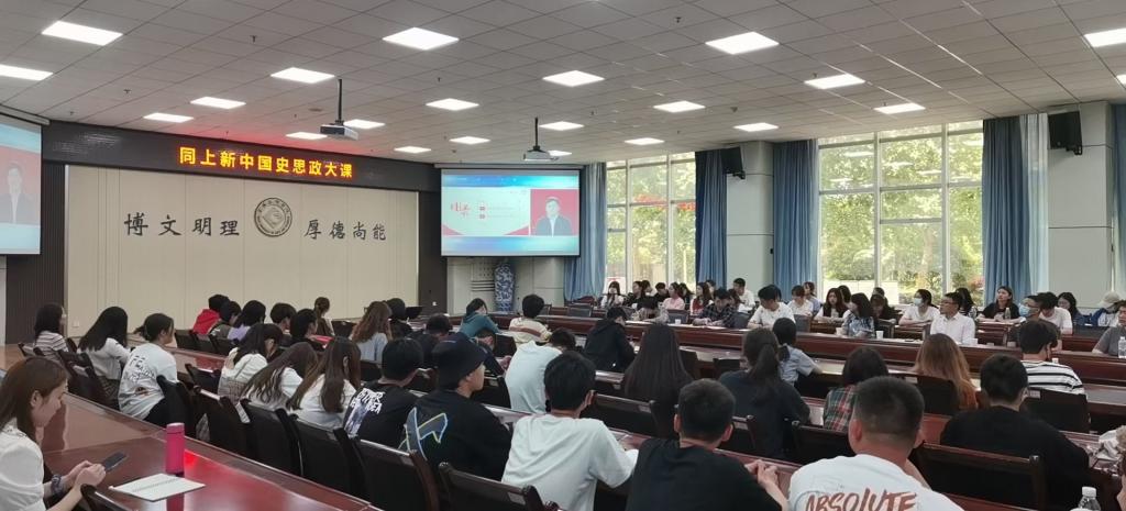 5月9日下午,beat365组织师生代表在高新校区甘棠厅观看了教育部“同上新中国史思政大课”网络直播。