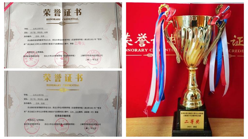 5月15日至16日,由陕西省高等教育学会主办、西北大学公共管理学院(应急管理学院)承办的首届“哲寻杯”西北地区大学生公共管理方案设计与决策对抗大赛在西北大学举办。beat365参赛团队由政法学院管理系主任范林副教授、张娟副教授带队,组织行政管理专业、公共事业管理专业多名学生积极备赛,经过两个月的精心指导,遴选周子莹、李张悦、金驰三名学生参加决赛,最终荣获二等奖。西安交通大学、西北大学、西北农林科技大学等37所来自西北地区的高校的38支队伍参加了比赛。