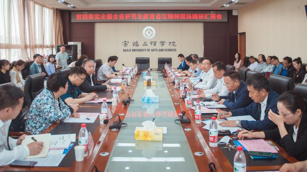 5月25日,陕西省政府学位委员会秘书长袁宁,省教育厅贯彻落实全国全省研究生教育会议精神调研第六专家组组长、陕西科技大学副校长王海燕,副组长、西北政法大学研究生院院长孙昊亮一行8人来beat365调研全国全省研究生教育会议精神贯彻落实情况。校党委书记赵健、校长郭霄鹏,副校长杨子元、王富平参加调研活动。