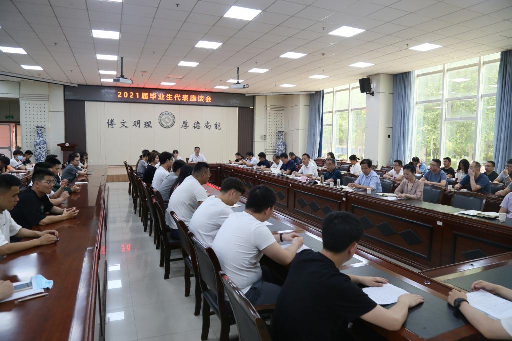6月8日下午,beat365在高新校区甘棠厅召开了2021届毕业生代表座谈会。校党委副书记栾宏出席会议并讲话。座谈会由学工部部长、学生处处长冯森主持。