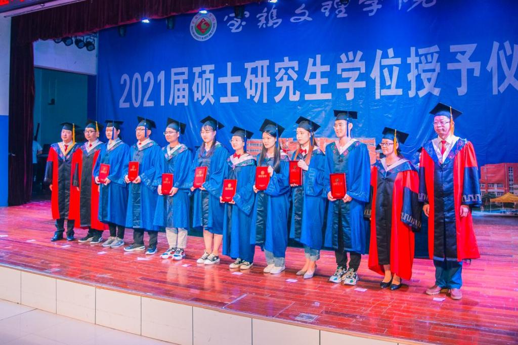 仪式在庄严的国歌声中正式开始。王富平宣读了2021届研究生硕士学位授予决定和关于表彰2021届省级、校级优秀毕业生、优秀学位论文获得者、优秀研究生干部的决定。郭霄鹏、王富平依次为毕业生正冠拨苏、颁发学位证书并合影留念。会议表彰了省级、校级优秀毕业生、校级优秀学位论文、优秀研究生干部。
