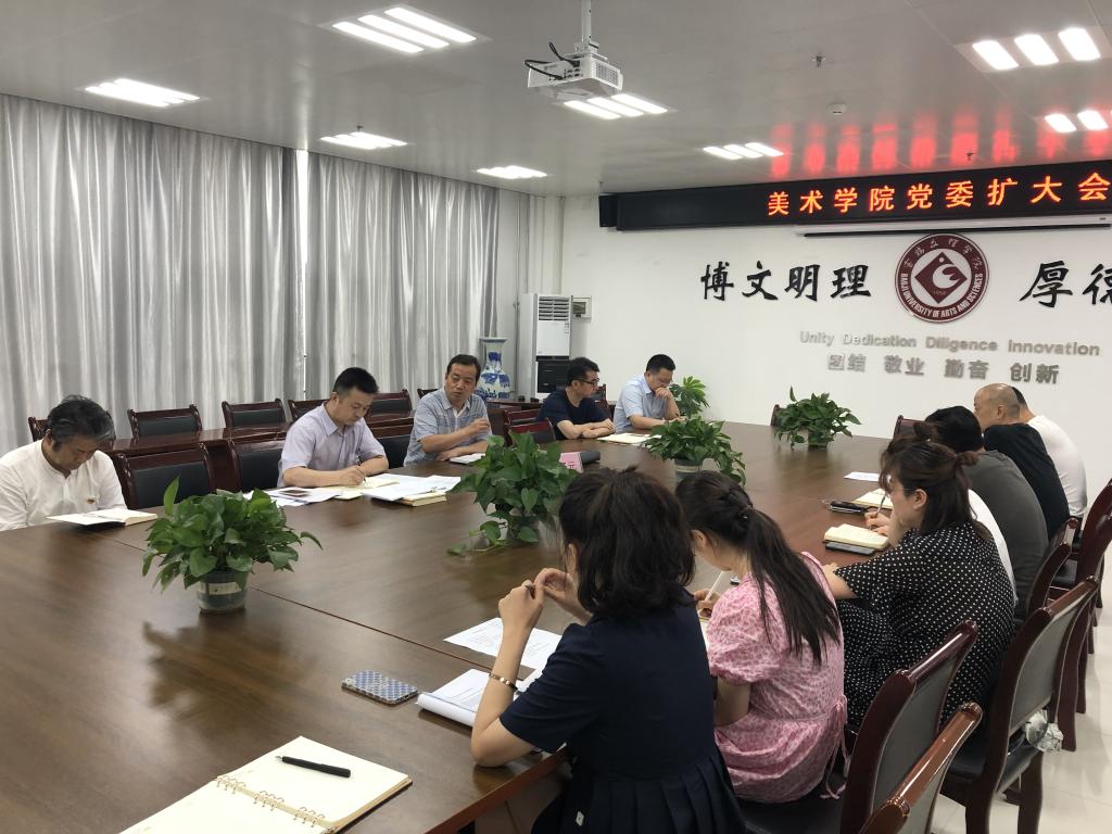 6月30日下午,美术学院在高新校区博文楼1301会议室召开党委扩大会议,副校长杨子元、学院党委委员、党委中心组成员、各党支部书记参加了会议。会议由党委书记田富平主持。