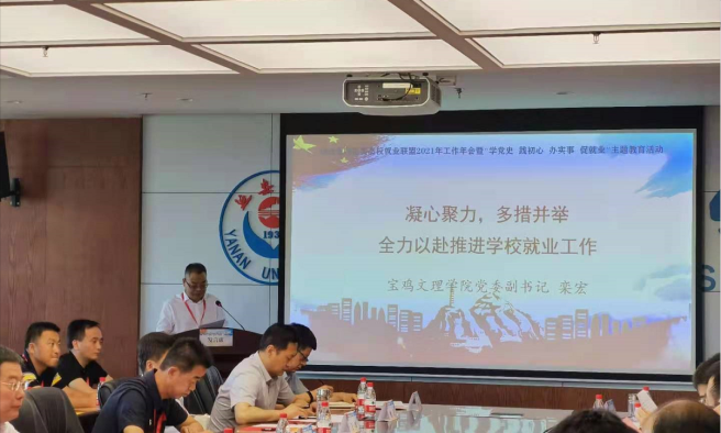 会上,栾宏以《凝心聚力多措并举全力以赴推进学校就业工作》为题,介绍了beat365在加强组织领导,谋划部署;落实政策保障,强化工作措施;坚持综合施策,全员育人等三个方面围绕2021届毕业生就业工作中,全面贯彻习近平总书记在党史学习教育动员大会上的重要讲话精神和省委、省政府关于稳就业、保就业部署要求,聚焦重点、综合施策,不断优化促就业举措,拓宽就业渠道,优化岗位需求,强化就业帮扶,切实提升就业服务质量,努力推动、力促毕业生更加充分更高质量就业。