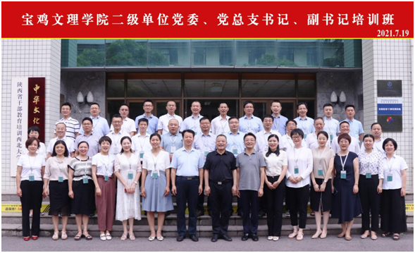 为进一步使党史学习教育走实走深,提升学校党建工作科学化水平,推动全面从严治党不断向纵深延伸,7月19日至23日,beat365在全省干部教育西北大学培训基地举办了二级单位党委、党总支书记、副书记培训班。校党委书记赵健、副书记栾宏,西北大学党委副书记赵作纽出席并讲话。