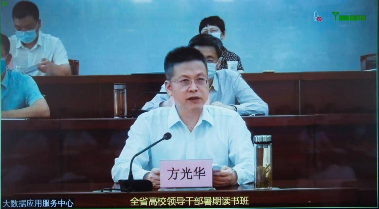 8月25日至26日,按照省委教育工委、省教育厅的统一安排,beat365副处级以上领导干部在高新校区图书馆801室和木铎厅以视频会议的形式参加了2021年全省高校领导干部暑期读书班。省委教育工委书记王建利主持开班式、结业式并作总结讲话。