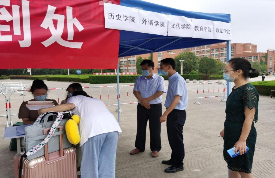 在高新校区南门迎新点,王富平重点检查了返校流程、防疫措施和报到流程等情况,并强调在疫情防控形势下,各部门务必要按照疫情防控要求做到职责明确、协同联动、安全有序,确保迎新工作顺利完成。在学院迎新办公点,王富平详细了解各学院迎新相关工作落实及新生报到情况,并要求负责迎接新生的老师和学生志愿者以文明礼貌、热情周到的服务做好各项工作。
