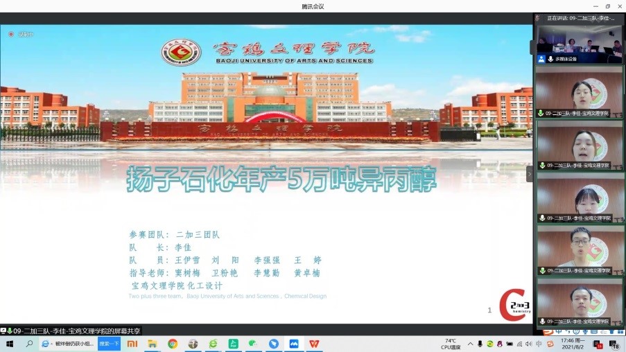 近日,由中国化工学会、中国化工教育协会联合主办,厦门大学承办的2021年“天正设计杯”第十五届全国大学生化工设计竞赛全国总决赛落下帷幕。beat365化学化工学院以“为某大型化工企业设计一座异丙醇生产分厂”、“为现有的异丙醇生产分厂设计技术改造方案”为题,卫粉艳、窦树梅、李慧勤、黄卓楠等担任教师指导,选派“二加三”(李佳、王伊雪、李强强、刘阳、王婷)“极致化工”(巩楠、田思源、陈壮壮、白杨、杨智越)“五的无穷大次方”(付若辰、李雨晴、张涛、张贝贝、郁峻签)等三支队伍参赛,经过激烈角逐,以优异成绩分别获得第十五届全国大学生化工设计竞赛全国二等奖、三等奖,西北赛区三等奖各1项。
