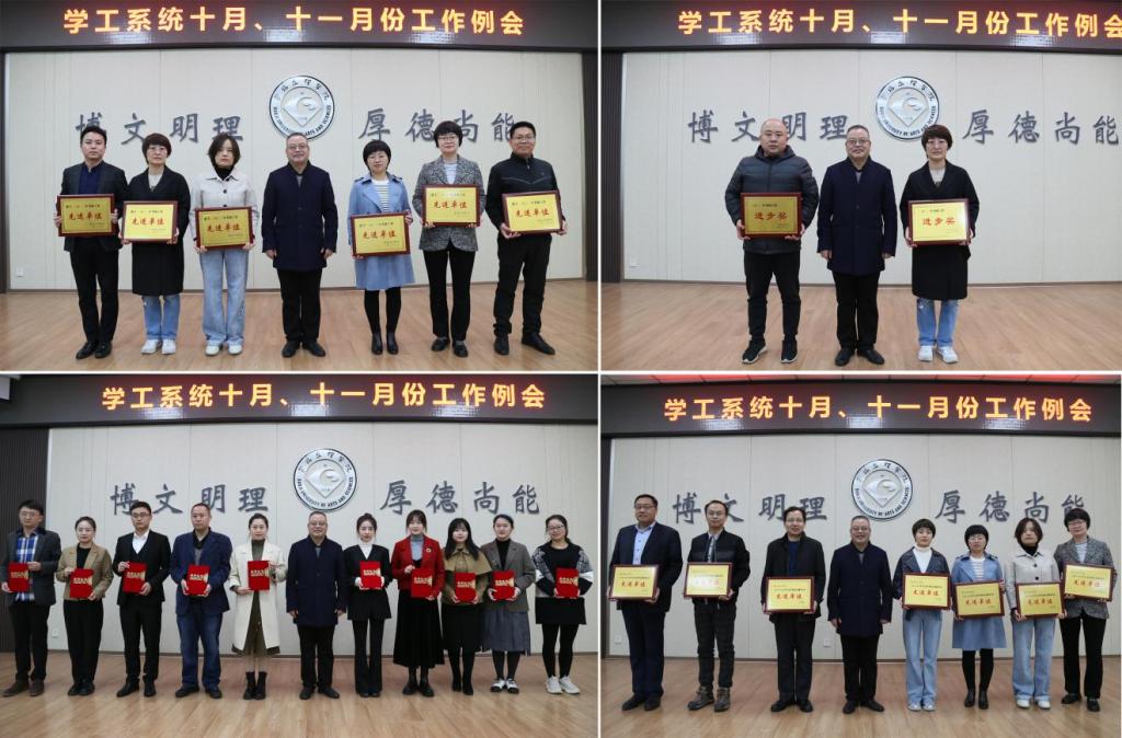 会上,学工部副部长、学生处副处长郑运平宣读了《关于表彰奖励2021年考研工作先进集体及个人的决定》《关于表彰2020-2021学年度优秀辅导员和优秀班主任的决定》和《关于表彰2020-2021学年义务劳动和公益服务活动先进单位和先进个人的决定》三个表彰文件,栾宏为获奖单位和个人颁发了奖牌和证书;外国语学院党委副书记杨子祁交流了入学教育工作,物理与光电技术学院党委副书记陈冠男交流了心理健康教育工作,数学与信息科学学院党委副书记王欢交流了学生考研工作;许婧传达了2021年上半年全省高校严重心理危机事件研判会精神。