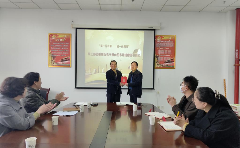 10月27日下午,beat365学工部团委联合党支部向图书馆捐赠图书仪式在高新校区图书馆501会议室举行,副校长杨子元出席捐赠仪式并为学工部团委联合党支部颁发了捐赠证书。机关党委、学工部、团委、图书馆等单位部分人员参加了捐赠仪式。捐赠仪式由图书馆党总支书记、馆长刘崇学主持。
