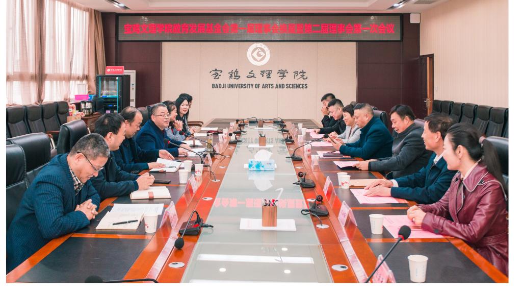 党政办公室、学工部、招生就业处、国有资产管理处负责人,美术学院党委书记、第一届理事会秘书长田富平,陕西聚创智博信息技术有限公司董事赵宏斌、陕西驰国昌建筑工程有限公司董事长王晓东、陕西中宝达产业投资有限公司总经理赵淑兰、深圳市迪平包装纸业有限公司副总经理刘成飞、陕西上上东餐饮管理有限公司总经理邸万龙、宝鸡世纪彩虹科技有限公司总经理付小红等理事,基金会第二届监事、宝鸡英创教育集团董事长殷建兵参加了会议。(校教育发展基金会、校友总会、校友工作处 文/李卫刚 图/张平 审核/刘景世)
