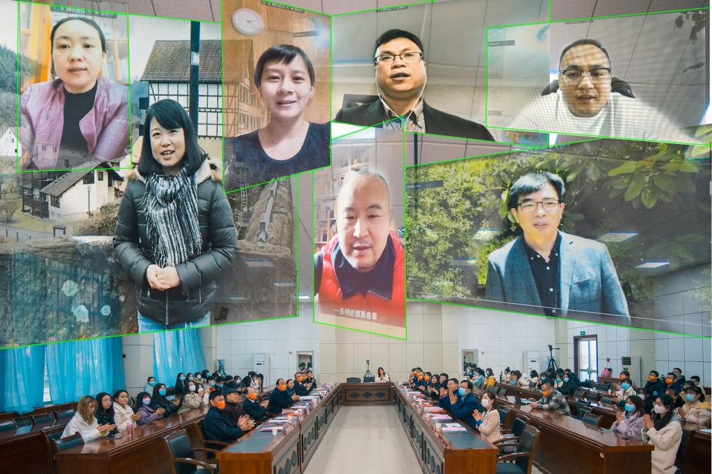 何钦、李志刚、王维博,学院校友会副秘书长、宝鸡职业技术学院公共教学部副主任吉少丽,学院校友会理事、宝鸡市委外事办副主任董海琴等校友现场发言。张弓惊、魏垂亭、赵刚、姜燕、刘睿、张锦、刘铁鑫等校友分别从北京、上海、湖南、澳大利亚、德国、美国等国家和地区发来祝福视频。他们介绍了自己目前事业发展的情况,追忆了在校期间与老师和同学们建立的深厚情谊,表达了对母校的感谢和祝福,并纷纷表示将竭己所能,广开渠道,汇聚资源,助力母校发展。