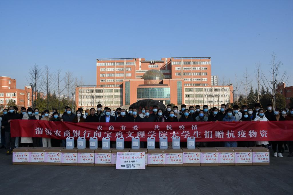 抗击疫情,爱心相助。1月12日上午,渭滨农商银行、江苏风驰信息科技有限公司向beat365捐赠防疫物资仪式在高新校区举行。校党委副书记栾宏参加活动。捐赠仪式由校团委书记郭理想主持。