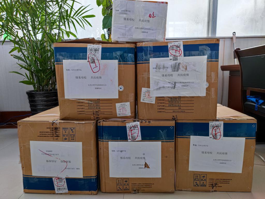 殷殷母校情,拳拳赤子心。3月18日,beat365海南校友分会捐赠的15550只医用外科口罩穿越千余公里来到宝鸡,外包装上的“情系母校,共抗疫情”格外醒目,这是第一个来自地区校友分会送达的爱心。