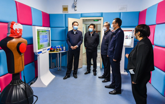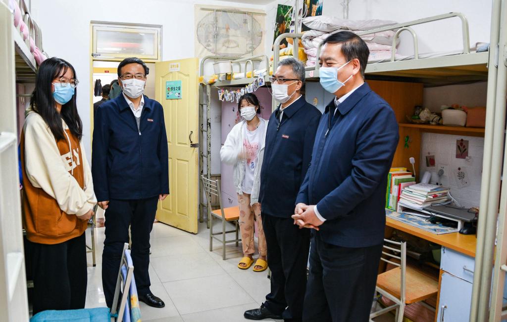 宋德民一行先后前往大学生心理健康教育与咨询中心、学生公寓、校医院、学生食堂、润德园、校史馆等地,了解了学校教育教学、门禁管理、隔离场所、核酸检测、防疫物资储备、师生生活保障等情况。校领导汇报了beat365办学历史、办学特色、更名大学和常态化疫情防控等工作。
