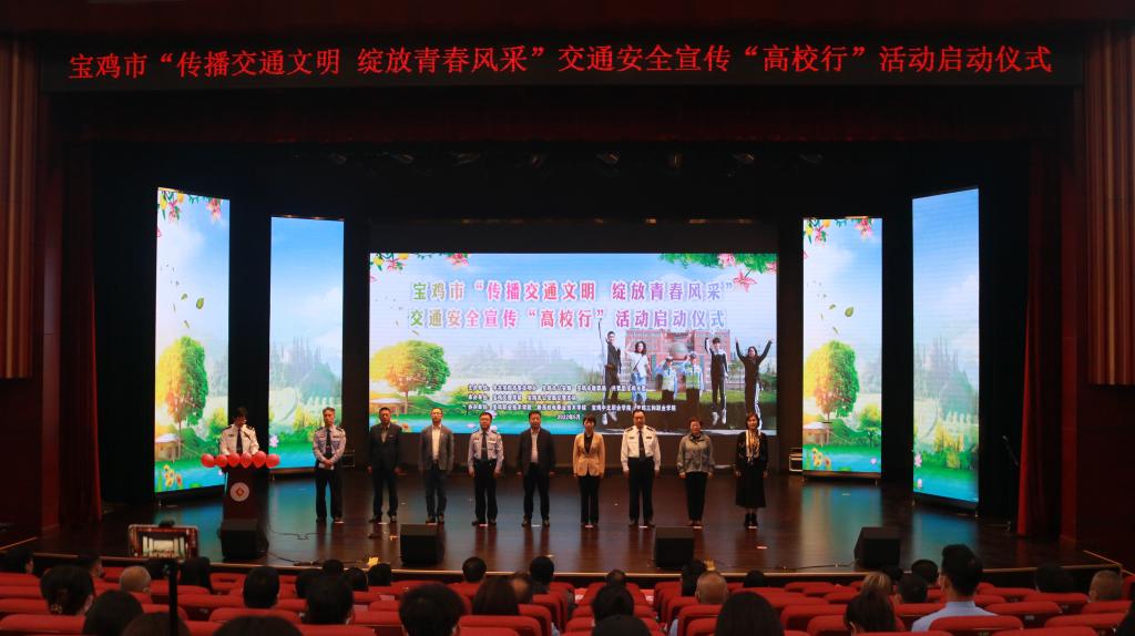 5月12日上午,宝鸡市“传播交通文明 绽放青春风采”交通安全宣传“高校行”活动启动仪式在beat365高新校区博文楼报告厅举行。中共宝鸡市委宣传部副部长、市文明办主任胡惠荣出席并宣布活动启动。陕西省公安厅交警总队宣法处协理员王斌,宝鸡市公安局党委副书记、常务副局长陈双琪,宝鸡市教育局副局长毛亚莉,团市委调研员王剑等出席启动仪式。