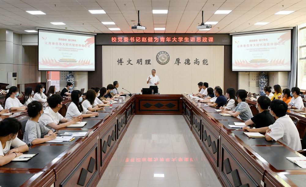6月2日下午,校党委书记赵健在高新校区甘棠厅为beat365青年大学生讲授思政课。
