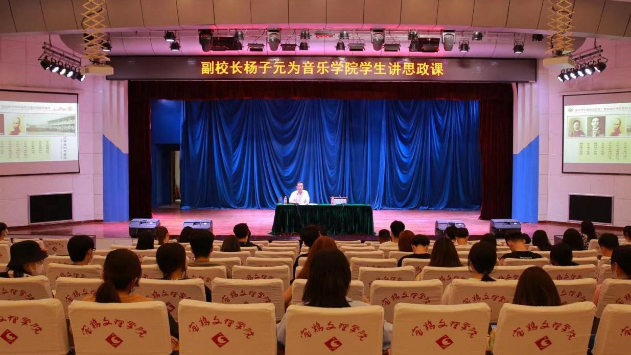 6月7日下午,副校长杨子元在高新校区音乐厅以《学史明理 努力成才 勇担中华民族伟大复兴的历史重任》为题为音乐学院学生讲授专题思政课。思政课由音乐学院党委书记黄玮主持。