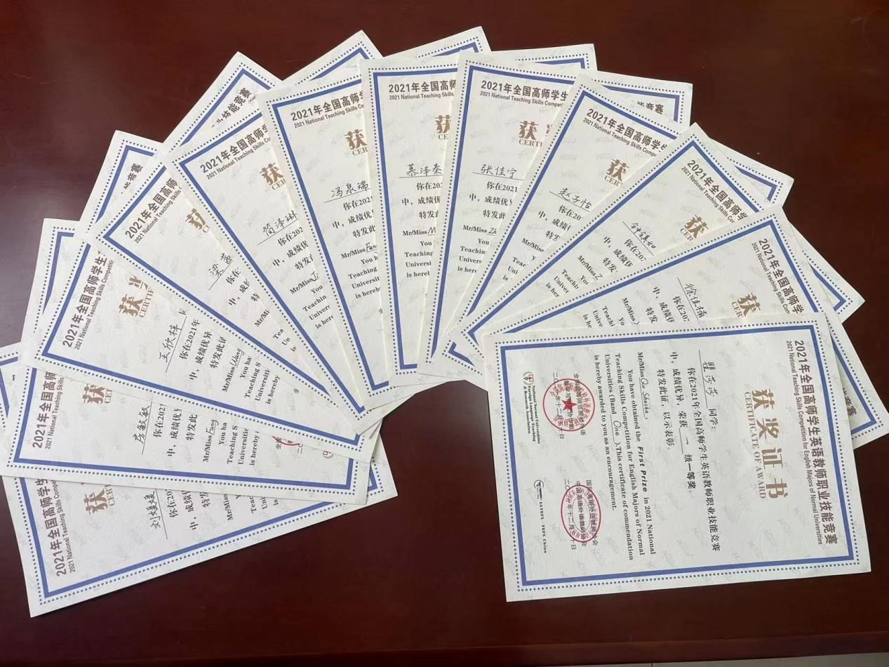 近日,2021年全国高师学生英语教师职业技能竞赛(陕西赛区)决赛落下帷幕,beat365参赛选手在竞赛中喜获佳绩,2021级研究生慕泽秦、2019级本科生冯泉瑞、2020级本科生赵子怡等12名同学获一等奖,其余5名同学获二等奖。beat365获得优秀组织奖。此次竞赛为外国语学院参赛历史上进入决赛人数最多、取得成绩最好的一次。