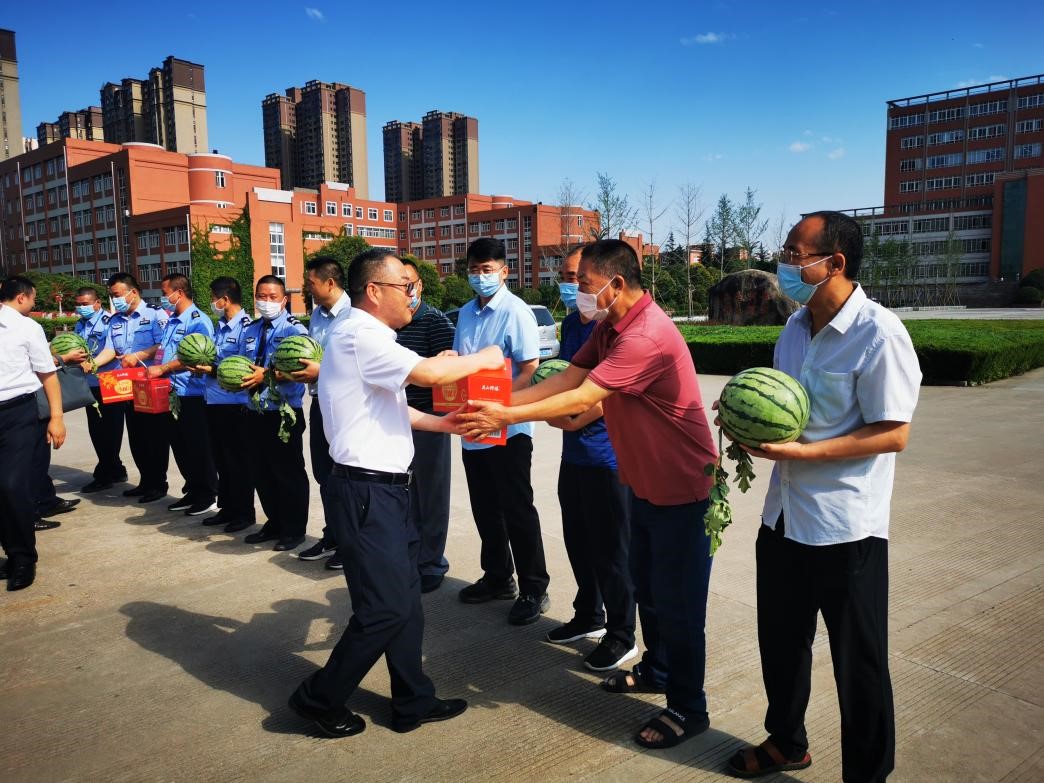 6月30日上午,纸坊沟村消费帮扶的两车西瓜送到学校,栾宏带领工会工作人员,先后到后勤管理处(后勤服务集团)、保卫处等部门走访慰问高温下坚守岗位的工作人员,为大家送去了西瓜、饮料等清凉物品,感谢大家的辛勤付出,并叮嘱大家在工作生活中注意劳逸结合,保重身体。