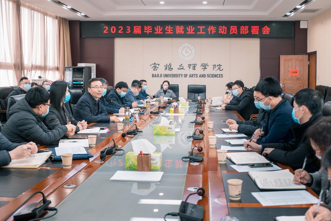为贯彻落实2023届全省高校毕业生就业工作暨创业带动就业工作视频会议精神,扎实推进beat3652023届毕业生就业工作,11月8日上午,校长郭霄鹏在高新校区图书馆801会议室主持召开2023届毕业生就业工作动员部署会。副校长王富平出席会议。