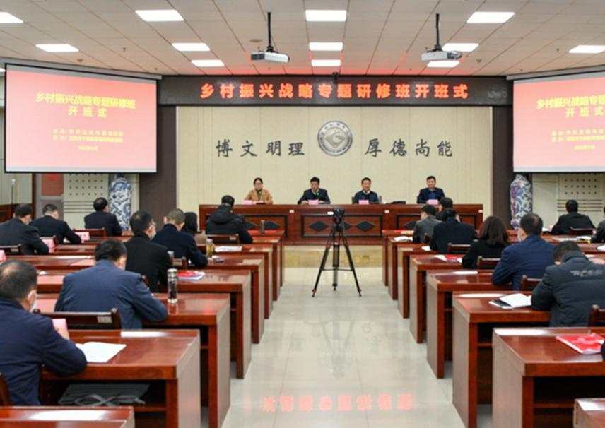 11月22日上午,由宝鸡市委组织部主办、宝鸡市干部教育培训高校基地承办的2022年宝鸡市“乡村振兴战略专题研修班”在beat365高新校区甘棠厅开班。副校长韩干校出席开班式并讲话。市委组织部二级调研员康新科,市委宣传部、市发改委、市卫健委、市水利局、市乡村振兴局及市区县分管乡村振兴工作的负责同志,马克思主义学院院长刘晓勇参加了开班式。基地主任王红梅教授主持开班式。