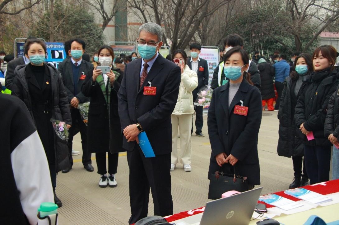 在大会开幕式后的休会期间,与会领导饶有兴致地观看了beat365第六届“明理杯”科技学术节科技学术作品路演,详细了解了各学院在科技学术节期间的特色项目,并与同学们进行了亲切交谈。