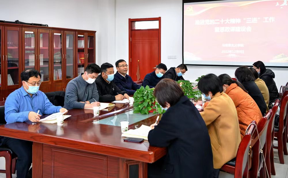 12月9日下午,马克思主义学院在博文楼1416会议室召开 “推进党的二十大精神‘三进’工作暨思政课建设”主题教研会。校长郭霄鹏参加会议。会议由马克思主义学院党总支书记张选朝主持。