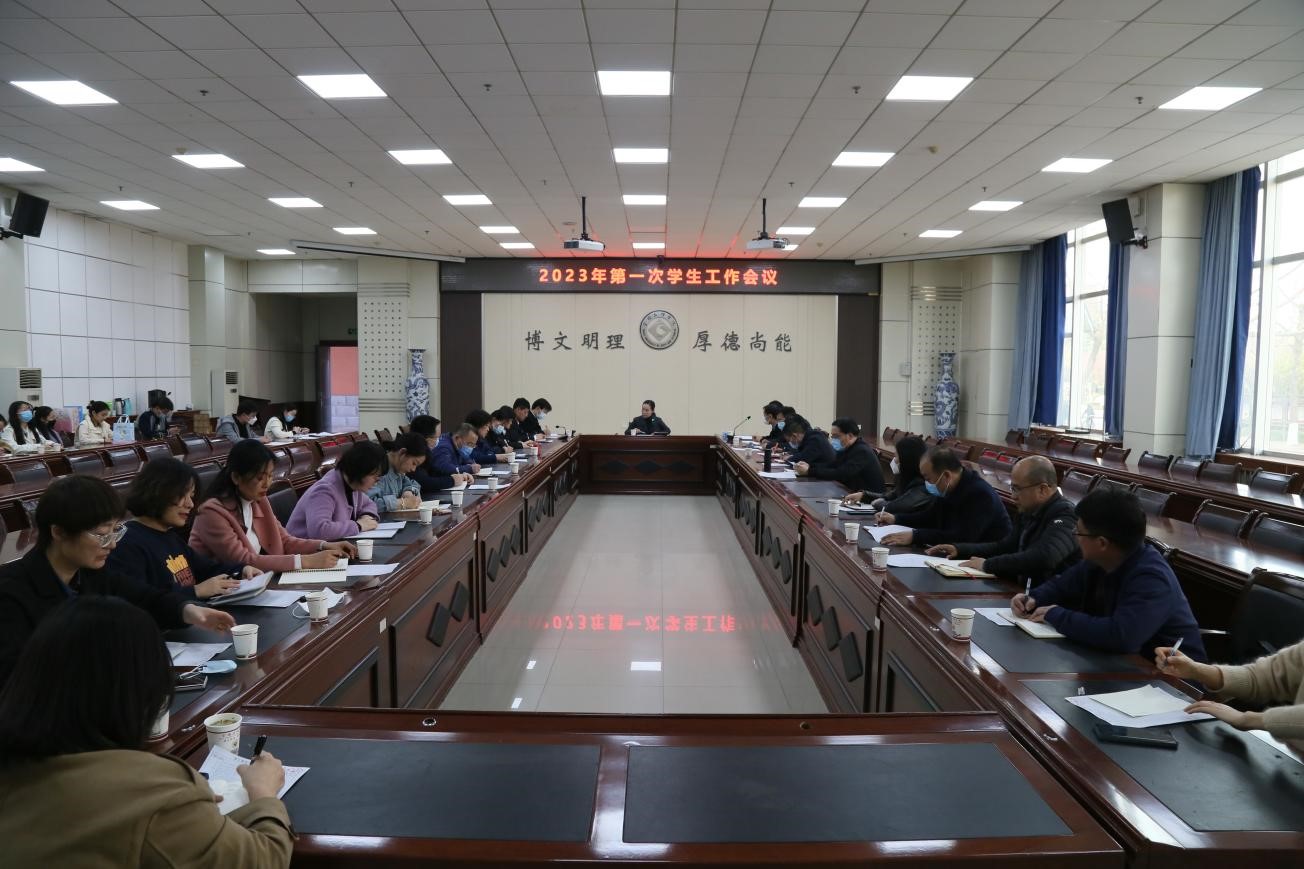 冯森总结了2022年学生工作,汇报了2023年学生工作思路,安排了三、四月份学生工作,重点强调了大学生思想政治教育、日常管理服务、心理健康教育、资助育人和学生公寓文化建设等工作;研工部副部长龙涛总结了2022年研究生教育管理工作,安排了三、四月份研究生教育管理工作;校团委书记郭理想、招生就业处处长范英、保卫处处长李迪、后勤管理处(后勤服务集团)处长李建钢分别安排了三、四月份共青团工作、招生就业工作、校园安全和武装部工作及后勤管理服务和疫情防控相关工作;校研究生会主席团执行主席朱善瑞、校学生会主席团执行主席李少璇分别汇报了开学初研究生和本科生的思想、学习和生活情况。