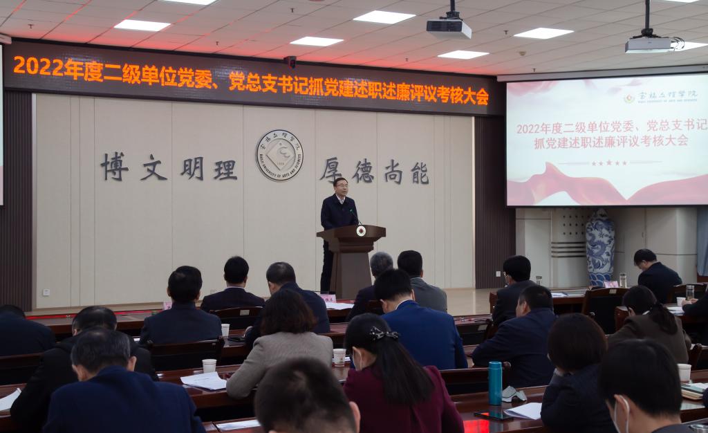 郭霄鹏在总结点评讲话时指出,2022年度,各二级单位党委、党总支工作思路明确、措施有力,工作开展得认真扎实、效果显著。全校各级党组织和广大党员干部以习近平新时代中国特色社会主义思想为指导,认真学习宣传贯彻党的二十大精神,深刻领悟“两个确立”的决定性意义,增强“四个意识”、坚定“四个自信”、做到“两个维护”,落实全面从严治党战略方针,践行新时代党的建设总要求,锐意进取、狠抓落实,全面提升基层党组织建设质量。各二级单位党组织书记紧紧围绕主责主业,认真履行党建第一责任人职责,党建引领学校高质量发展成绩突出,思想政治、意识形态、党风廉政建设和安全稳定工作卓有成效。