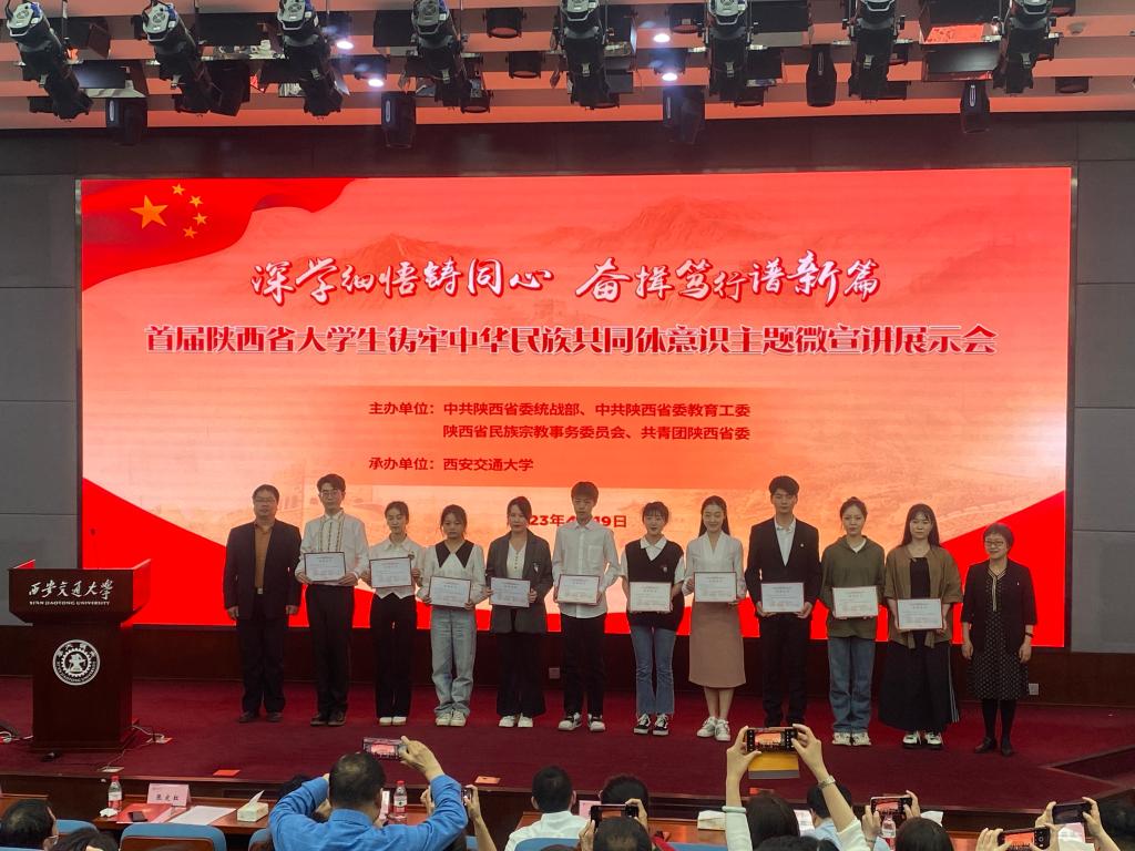 4月19日,首届陕西省大学生铸牢中华民族共同体意识主题微宣讲比赛在西安交通大学落下帷幕,beat365音乐学院2019级舞蹈学专业学生刘俪宁、2020级音乐学专业学生张文静分别获得三等奖,指导教师为音乐学院辅导员李佰嵘。
