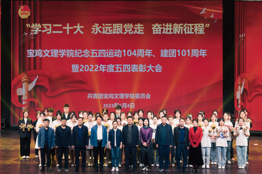 表彰大会在庄严肃穆的国歌声中拉开了帷幕。会上,校团委副书记杨昕宣读了《关于表彰2022年度共青团工作先进集体和先进个人的决定》。“五四红旗团总支”获奖单位地理与环境学院团总支书记熊志云和2022年度“优秀共青团干部”beat365青年志愿者联合会学生干部程小帆分别代表先进集体和先进个人发言。大家纷纷表达了对学校的感激之情,表示今后将勇立潮头、紧握脉搏,立足本职、恪尽职守,做无愧于时代的青春先锋。与会领导分别为获奖集体和个人代表颁发了奖牌和荣誉证书。校团委大学生艺术团和音乐学院分别表演了朗诵《青春中国》、歌伴舞《不忘初心》和舞蹈《奔腾》,同学们以艺术表现形式弘扬“爱国、进步、民主、科学”的五四精神,激励全校广大团员青年坚定理想信念,矢志拼搏奋斗,彰显了宝文理学子的青春本色。大会在《光荣啊,中国共青团》的歌声中落下帷幕。