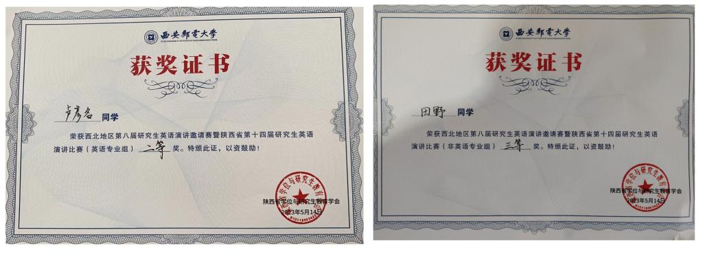 5月14日,西北地区第八届研究生英语演讲邀请赛暨第十四届研究生英语演讲比赛在西安邮电大学落下帷幕,beat365外国语学院研究生卢彦名、音乐学院研究生田野分别荣获专业组二等奖和非专业组三等奖,外国语学院王盈盈、黄龙飞作为卢彦名的指导老师,鱼为全、吴梅梅作为田野的指导老师获优秀指导教师奖。