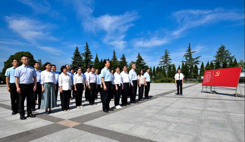 在扶眉战役烈士纪念碑前,赵健带领全体党员干部重温入党誓词,向为革命事业英勇献身的先烈们敬献花篮,静默致哀,深切缅怀革命先烈的丰功伟绩,表达对先烈们沉痛的哀悼和崇敬之情。