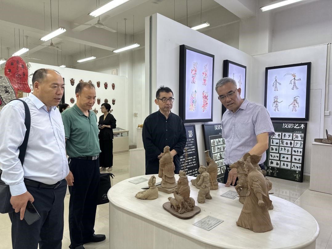 座谈会前,徐引正一行参观了beat365宝鸡民间美术展厅,美术学院院长李强介绍了展陈的具有宝鸡地方特色的民间美术作品。