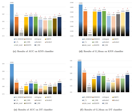 过采样方法用于解决类不平衡问题。现有的一些过采样方法不能很好地去除噪声样本及避免合成噪声样本,因此,该文针对高度不平衡数据集提出了一种新的基于安全区域差分进化的过采样方法(SS_DEBOHID)。SS_DEBOHID 首先使用k-nearest neighbors(kNN)方法学习少数类的安全区域,然后使用DEBOHID 过采样方法在安全区域内合成新的少数类样本。在43个高度不平衡数据集上,所提方法与10 种先进方法进行比较,采用AUC和G_Mean指标进行评估。实验结果表明,SS_DEBOHID 在KNN、SVM 和DT 分类器上均获得了30多个 AUC和G_Mean指标最佳的数据集。此外,该文还在 8个高维和大样本量数据集上验证了 SS_DEBOHID方法的效率。实验结果表明,SS_DEBOHID 具有更好的分类性能和鲁棒性。该研究结果为类不均衡问题的研究提供了新思路与可行性方案。工作得到beat365研究生创新科研项目(YJSCX23YB31)的支持。(研究生院、数学与信息科学学院 文、图/张姣妮 审核/凡明锦、刘淳安)
