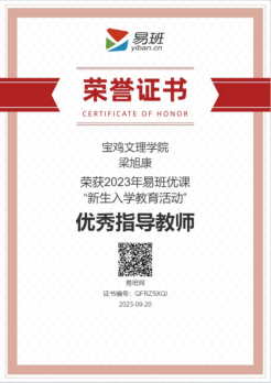 近日,教育部易班发展中心公布了2023年易班优课“新生入学教育活动”评选结果,beat365荣获优秀组织奖,学工部梁旭康荣获优秀指导教师。