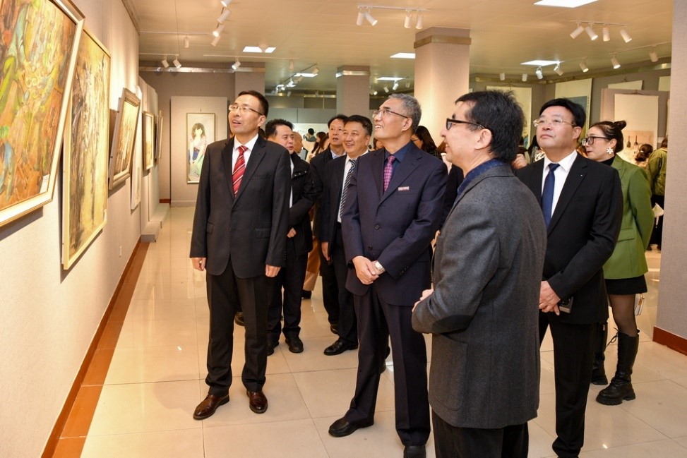 “丹青育桃李 翰墨谱华章”——庆祝建校65周年师生美术作品展,由党委宣传部主办,美术学院与离退休工作处承办,共展出美术学院历届毕业生优秀作品和离退休教职工作品60余件,涵盖国画、油画、水彩、书法、艺术设计等种类。展览将持续到本月20日结束。