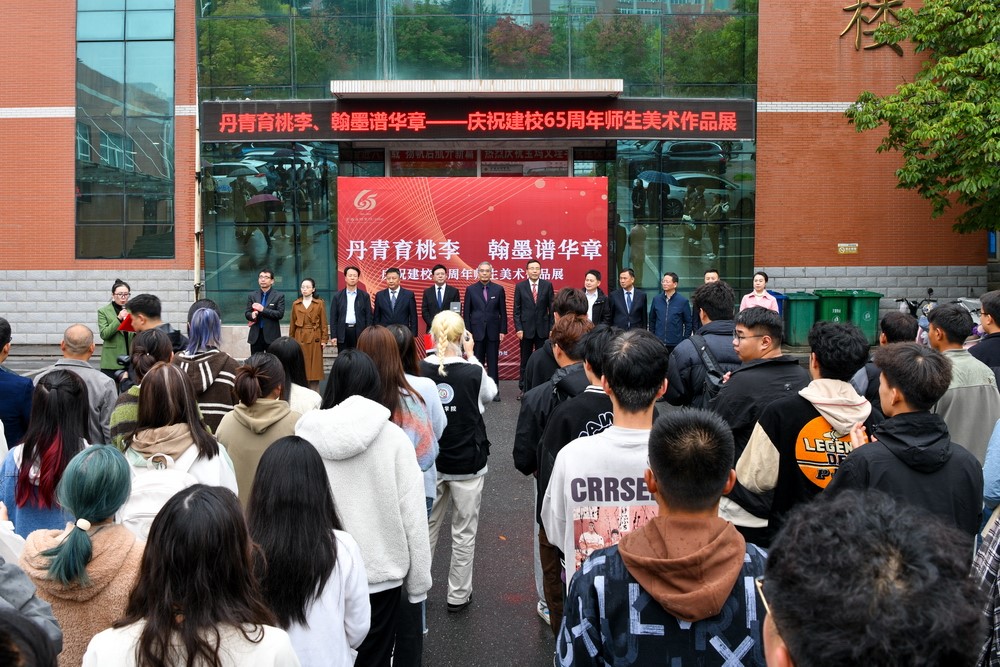 10月11日下午,“丹青育桃李 翰墨谱华章”——庆祝建校65周年师生美术作品展在高新校区开幕。校党委书记赵健、校长郭霄鹏出席开幕式。副校长韩干校主持开幕式。