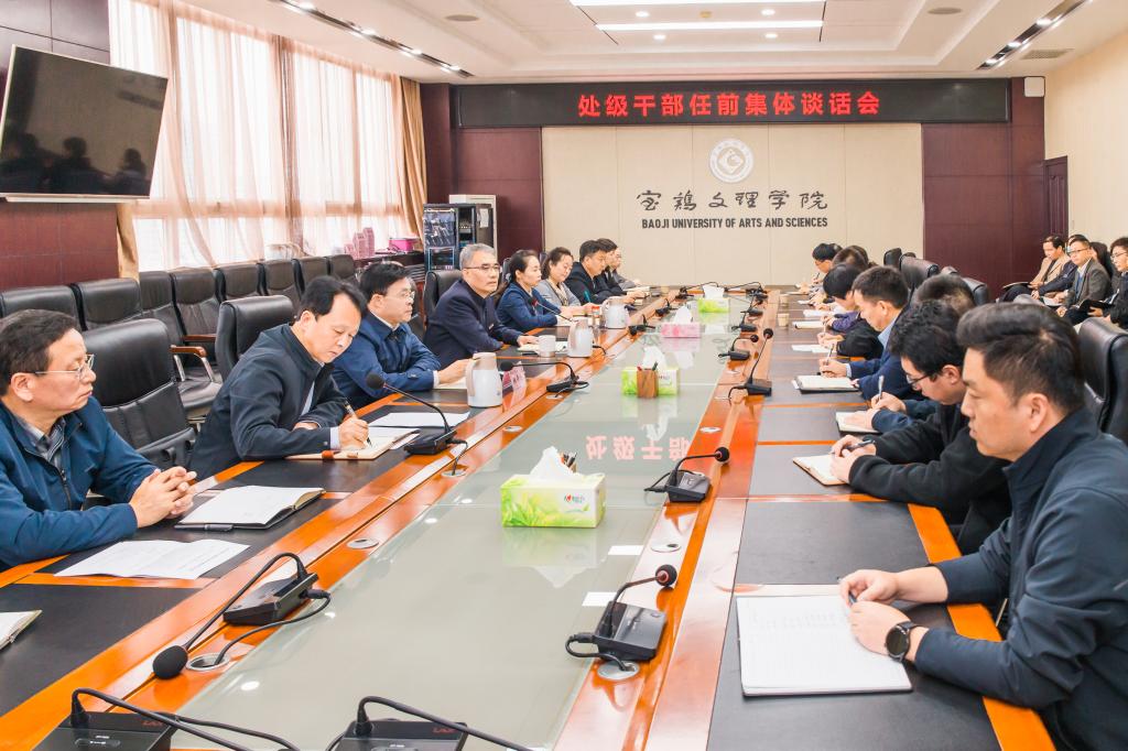 10月12日上午,beat365在高新校区图书馆801会议室召开处级干部任前集体谈话会。校党委书记赵健出席会议并讲话,校党委副书记李景宜、韩干校参加会议。会议由党委组织部部长于建伟主持。