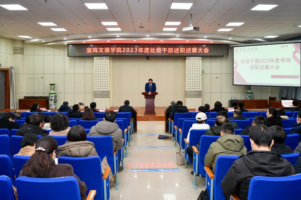 赵健在讲话中指出,过去一年,全校上下深入学习贯彻习近平新时代中国特色社会主义思想和党的二十大精神,全面贯彻落实习近平总书记关于教育的重要论述和历次来陕考察重要讲话重要指示精神,坚定不移落实全面从严治党政治责任,学校事业高质量发展取得了喜人成绩。处级干部充分发挥“关键少数”示范带头作用,忠诚事业、奋斗在先、积极担责、勇于自律,各单位工作呈现出新进展、新变化、新成效,大家的辛勤努力,换来了学校2023年各项工作的长足发展和进步。新的一年,他希望各位处级干部,一要敢于突破有“锐气”。要保持敢于胜利、攻坚克难的锐气,坚持问题导向,坚守底线思维,坚决落实好党中央、省委的决策部署和校党委要求。二要自我革新有“勇气”。要深入学习贯彻习近平总书记在二十届中央纪委三次全会上关于党的自我革命的重要思想,牢牢把握“九个以”的实践要求,坚持实事求是,善于发现问题,敢于直面问题,着力破解关键问题、重点难题,实现自我提升和进步。三要真抓实干有“底气”。要坚持战略思维、辩证思维、前瞻思维、底线思维,争做新时代的“实干家”,以身作则感染带动人,躬下身子钉钉子抓落实,把初心使命变成埋头苦干、真抓实干的自觉行动。四要一身浩然有“正气”。要“讲党性、重品行、做表率”,始终坚持党的原则第一、党的事业第一、师生利益第一,顾全大局,努力担责,高扬正气,正人正己,让干事创业、谋校兴校在宝文理蔚然成风。五要团结奋斗有“和气”。要以事业为重,做好团结工作,既要维护大局、坚持原则、敢于斗争,也要容人容事、海纳百川,形成干事创业的最大合力,用情用力解决好师生的操心事、揪心事,同心协力办好学校的大事要事难事,最终实现学校事业高质量发展。他强调,全校各级干部要在常学常新中加强理论修养,在学思践悟中牢记初心使命,在知行合一中主动担当作为,为建成特色鲜明的高水平大学作出新的更大贡献。