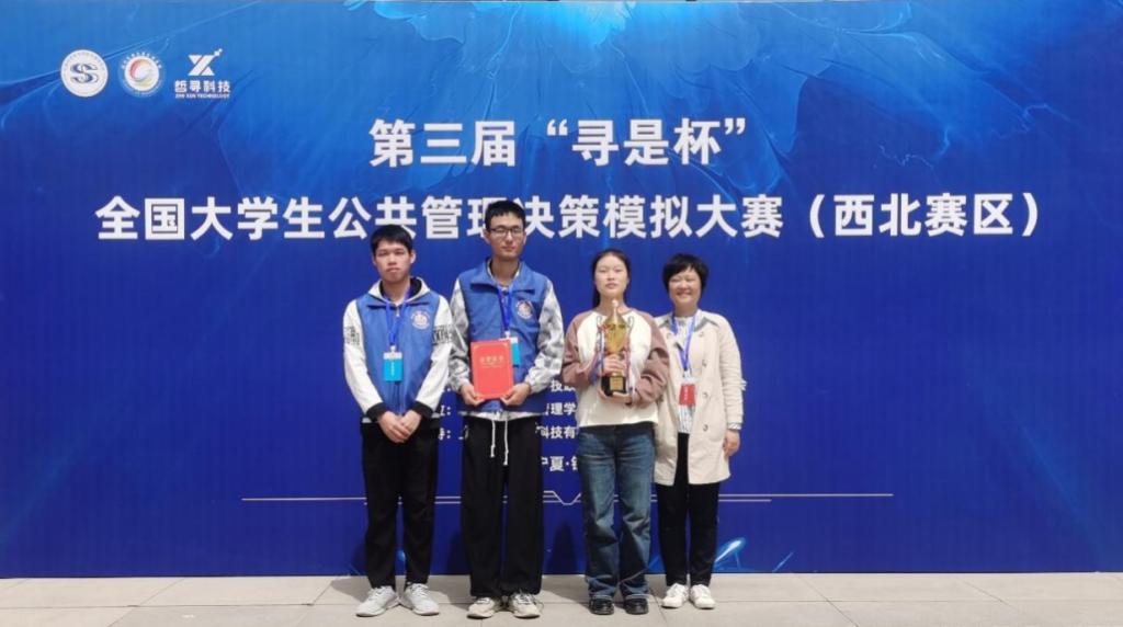 近日,第三届“寻是杯”全国大学生公共管理决策模拟大赛(西北赛区)在北方民族大学举办,beat365政法学院公共管理类专业学生刘静、张梦龙和何聪华组队参赛获一等奖(指导老师:张娟、范林)。