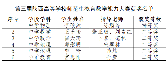近日,陕西省第三届高校师范生教育教学能力大赛结果公布,beat365学生获特等奖1项、二等奖5项,物理与光电技术学院教师陈熠玲获优秀指导教师,这是beat365首次在该项赛事中荣获特等奖。