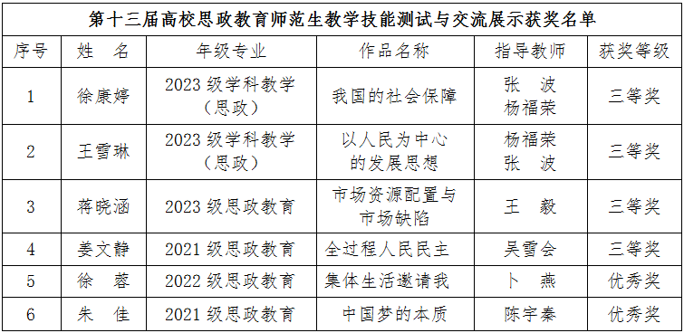 近日,2024年思政教育微格教学论坛暨第十三届高校思政教育师范生教学技能测试与交流展示活动在四川师范大学举行。beat365政法学院2名研究生、4名本科生获奖。其中,三等奖4项、优秀奖2项。